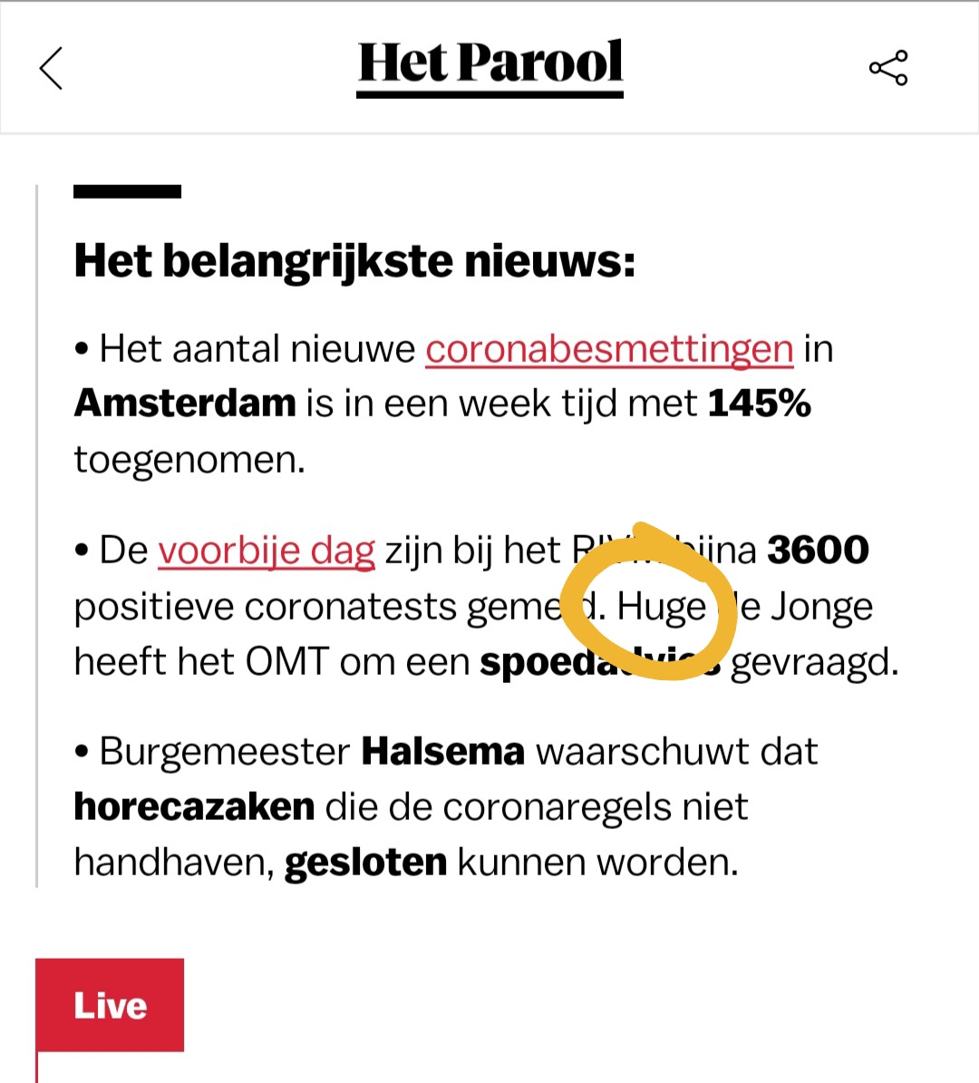 Laatste oudste meest besproken meest bekeken de meeste upvoted het meest gedeeld. Dat is bijna een verdubbeling van de gemelde besmettingen in de voorgaande week met 534 nieuwe meldingen. Nog maar een paar dagen geleden waren er zo'n 4.000 tot 5.000 meldingen in een week. In de periode tussen 27 juni en 3 juli werden dan ook dagelijks gemiddeld 62.400 testen uitgevoerd. Definition from wiktionary, the free dictionary.